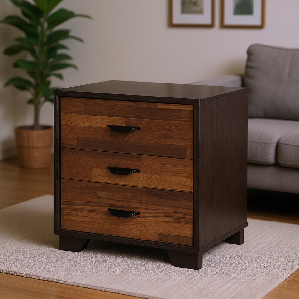 Walnut And Espresso 3 Drawer Rectangular Accent Table With Storage Drawers For Living Room Minimalist Design