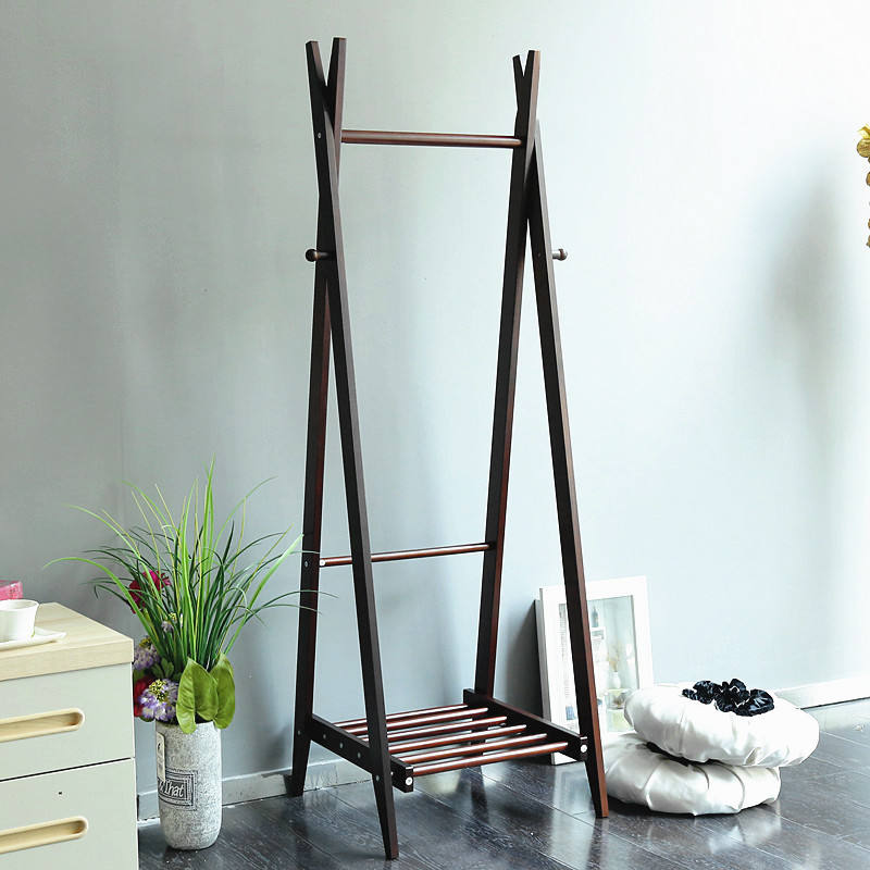 Walnut Color Wooden Cloth Hanging Rack Pine Solid Wood