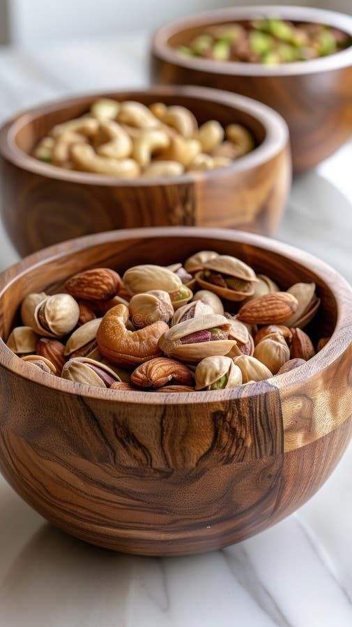 Walnut Wood Creative Salad Fruit Bowl Handmade Lightweight Disposal 1pc Polished Bowls with Pistachios and Cashews for Parties