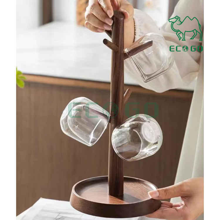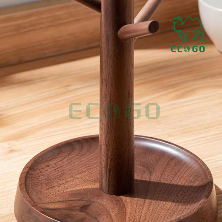Walnut Wood Removable Cup Organizer Hanger Holder Bamboo Cup Holder Coffee Mug Tree Stand
