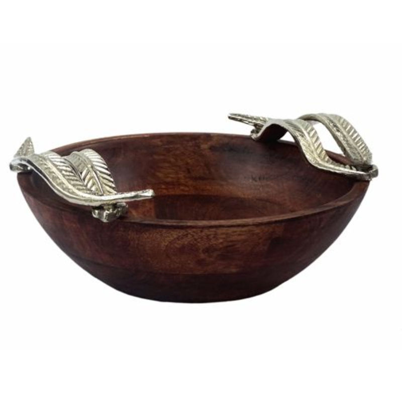 Walnut Wooden Serving Bowls Round Shape Home Hotels Tabletop Kitchenware Dinnerware Food Serving Bowls With Metal Handle