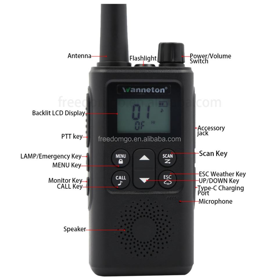 Wanneton F8 8W High Power Mini Walkie-talkie Portable Two-Way Radio with Multi-Function Weather Forecast PMR 446 FRS