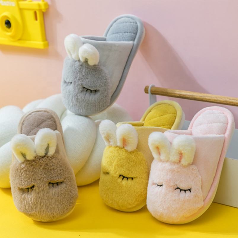 Warm Cute Cartoon Travel Slippers Rabbit Ear Plush Slippers for Kids PVC Rubber Sole Fluffy Slippers