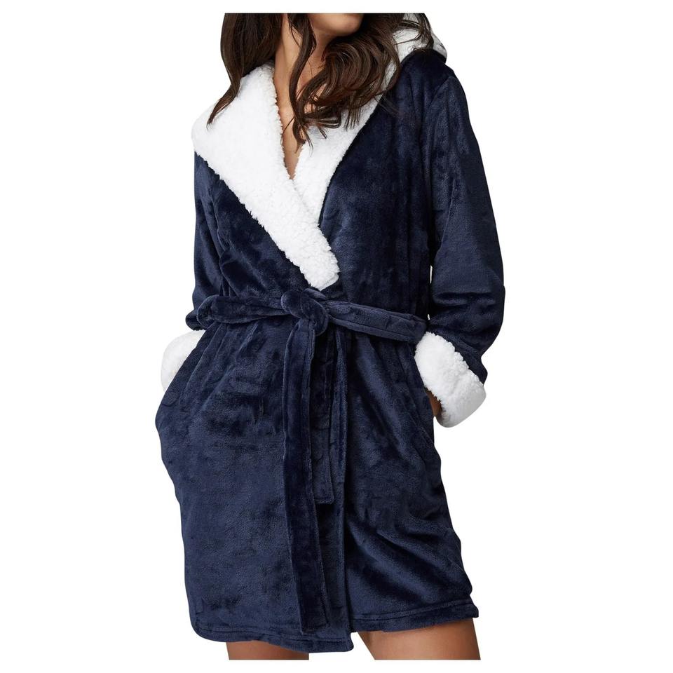 Warm Flannel Robe Winter Home Sleepwear Women Print Long Sleeve Bathrobe Kimono Robe with Belt Loungewear Female