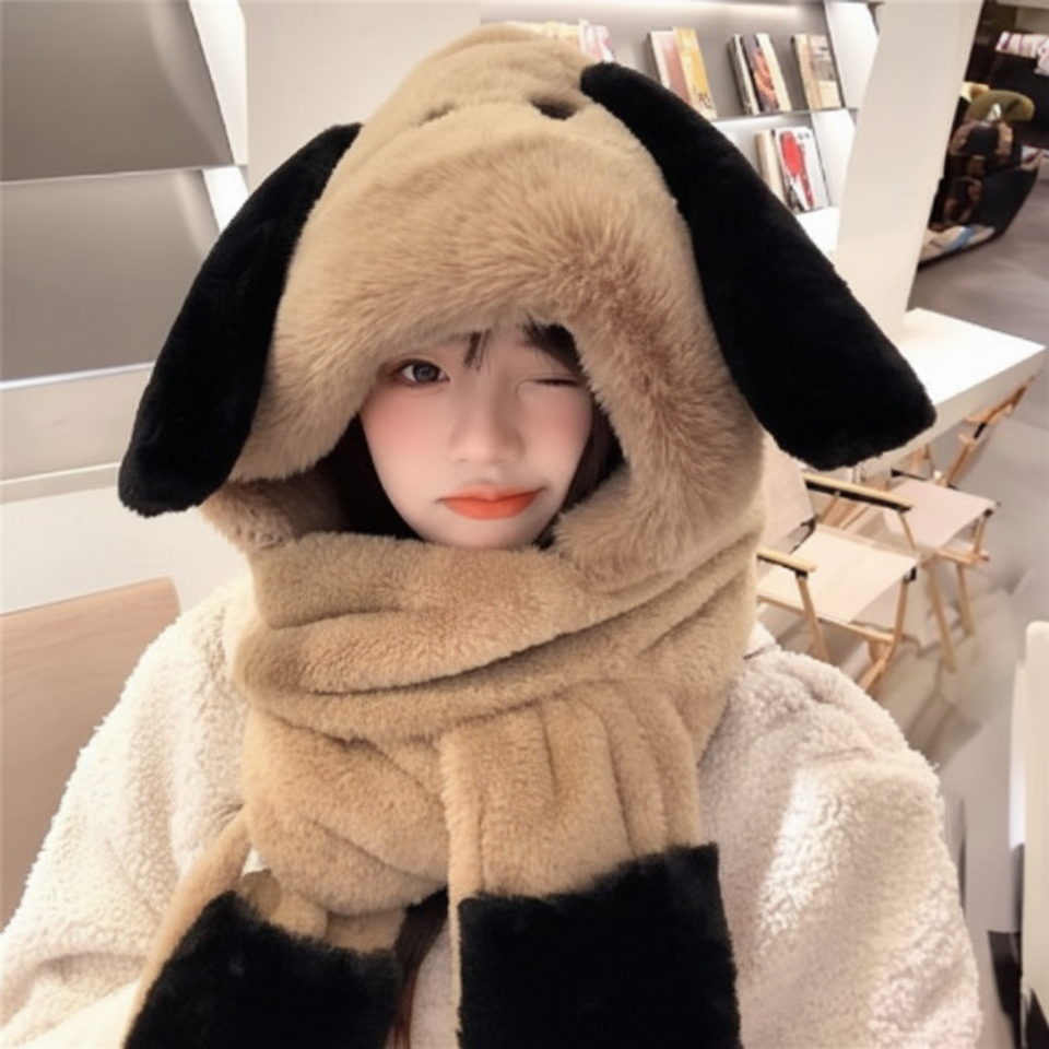 Warm Puppy Hat/Muffler Balaclava/Fur Hat/Bear Hood with Gloves Steamed Scarf Hat & Glove Sets