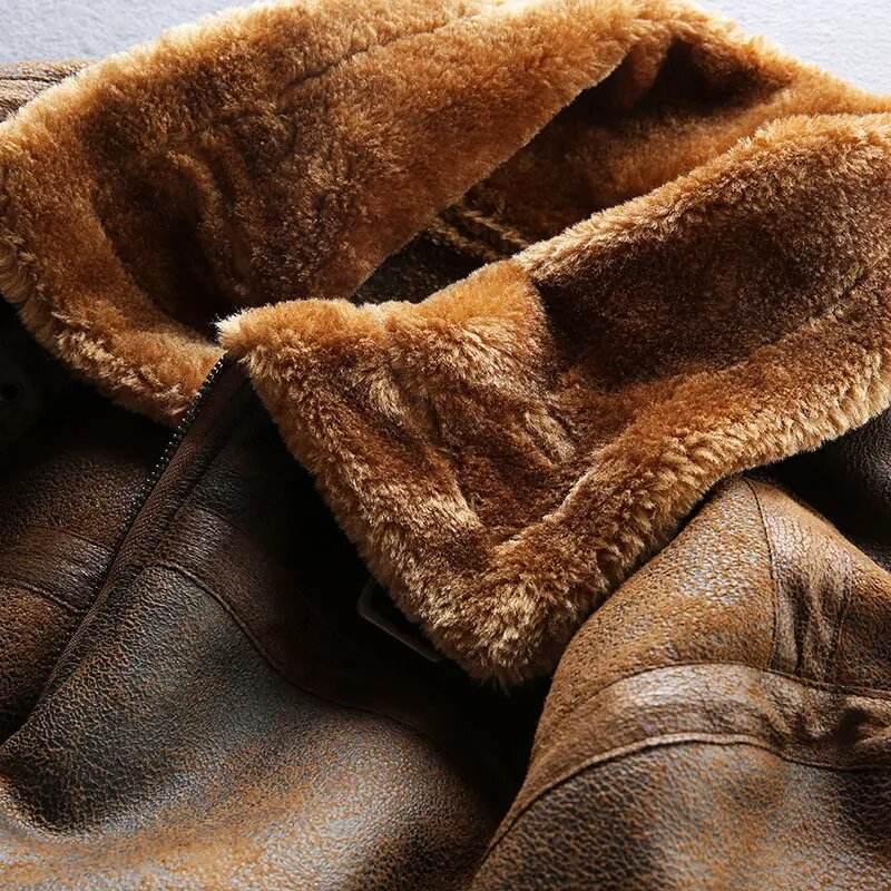 Warm Winter Fashion Vintage Faux Leather Bomber Faux Fur Coat High Quality Sheepskin Jacket Men