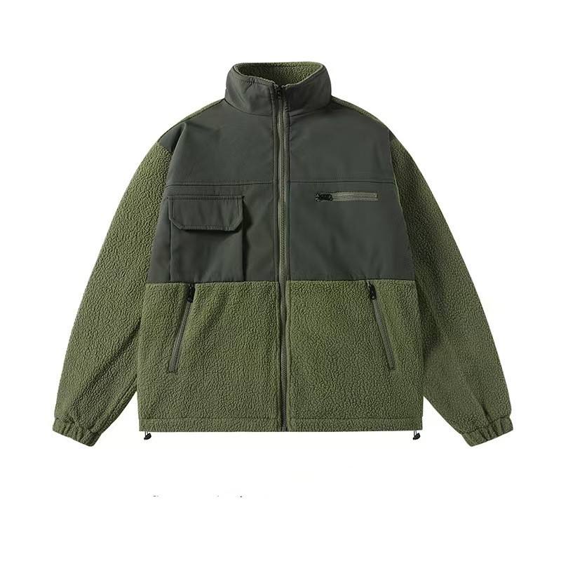 Warm Zip up Long Sleeve Winter Jackets Stand Collar Casual Fashion Polar Fleece Quilted Cotton Coat Jacket for man