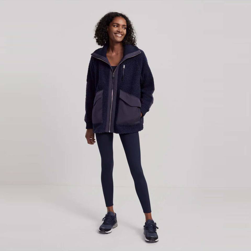 Warm and Fashionable Sherpa Colorblock Coat with Zip Closure and High Collar Perfect for Cold Weather