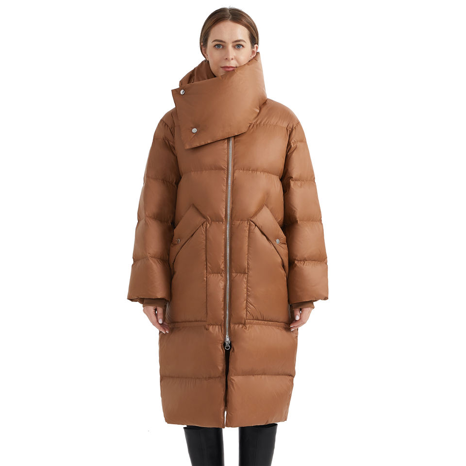 Warm and Lightweight brown Puffer Jacket for Women | Perfect for Casual Winter Wear Turn-down Collar, woman jacket
