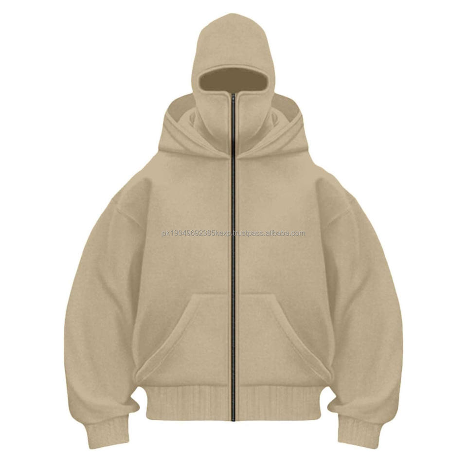 Warm fleece zipper balaclava hoodie winter jacket full zip design face mask custom logo available