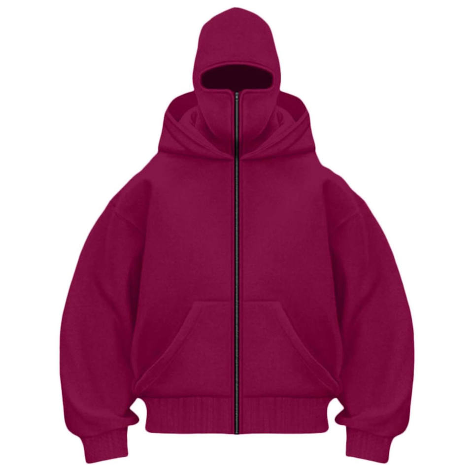 Warm fleece zipper balaclava hoodie winter jacket full zip design face mask custom logo available