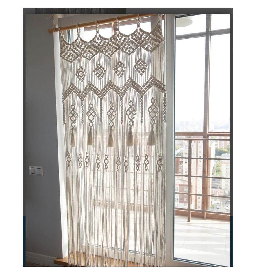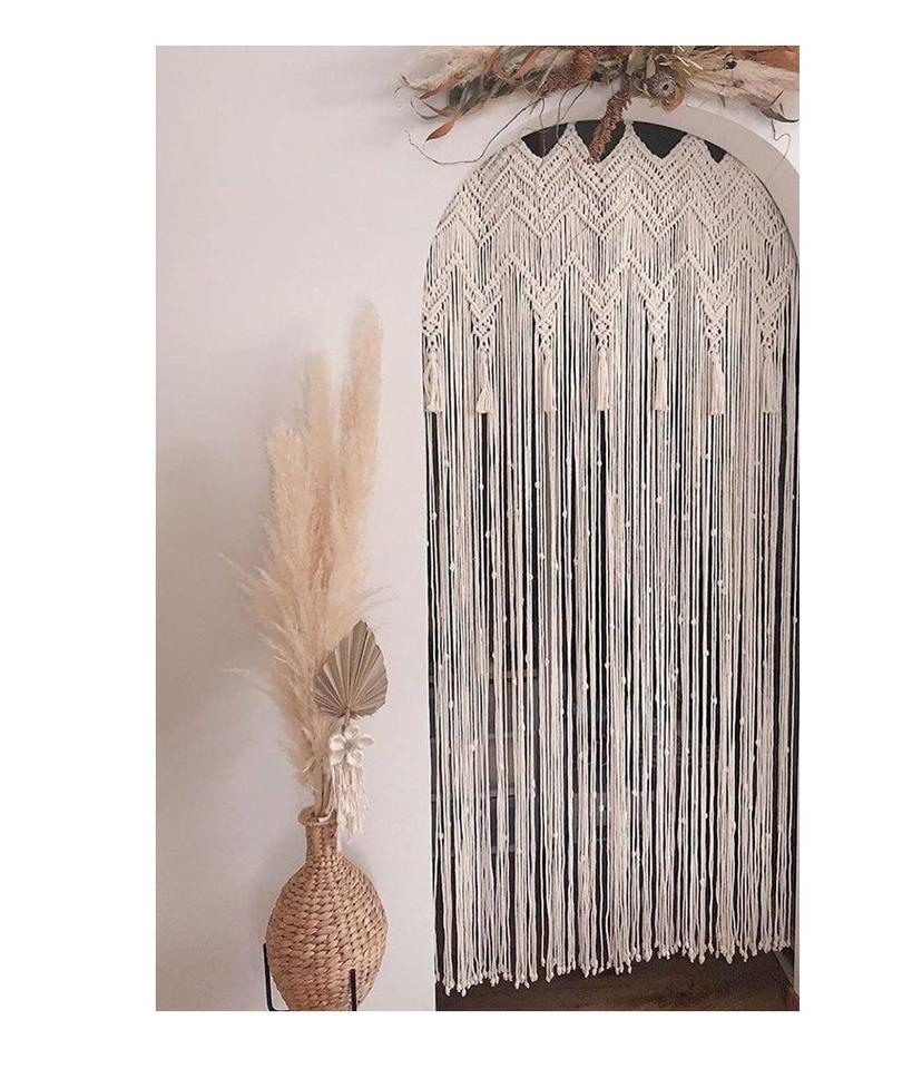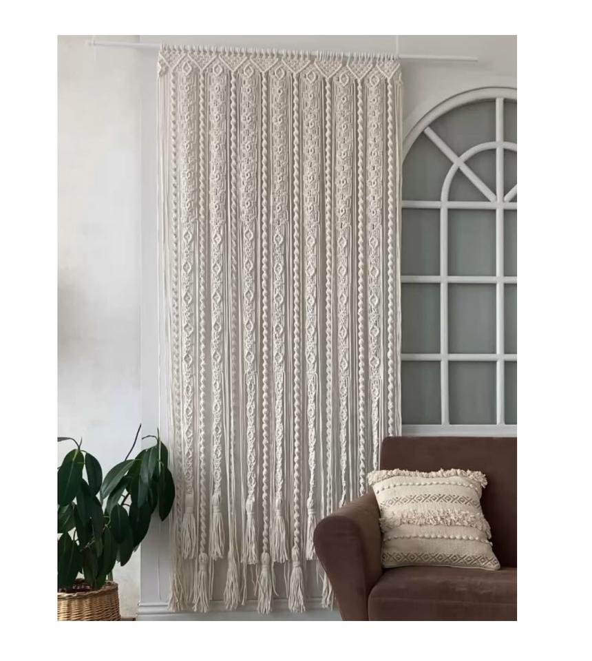 Warm tone macrame door curtain designed to complement cozy natural interiors with layered aesthetic appeal