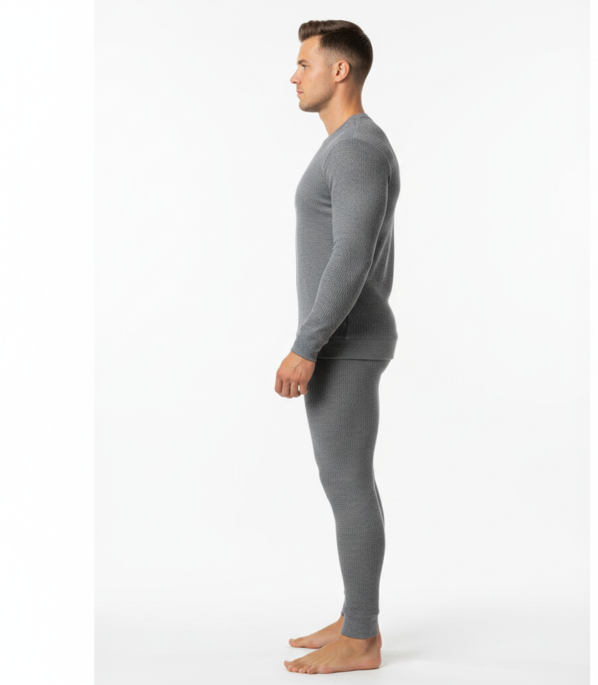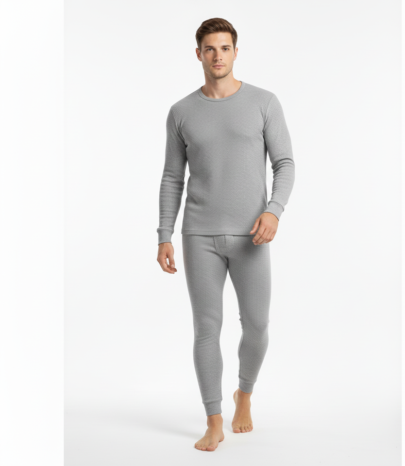 WarmTrack Grey Men Thermal Suit Soft Full Sleeve Breathable Fabric Built for Steady Cold Weather Protection