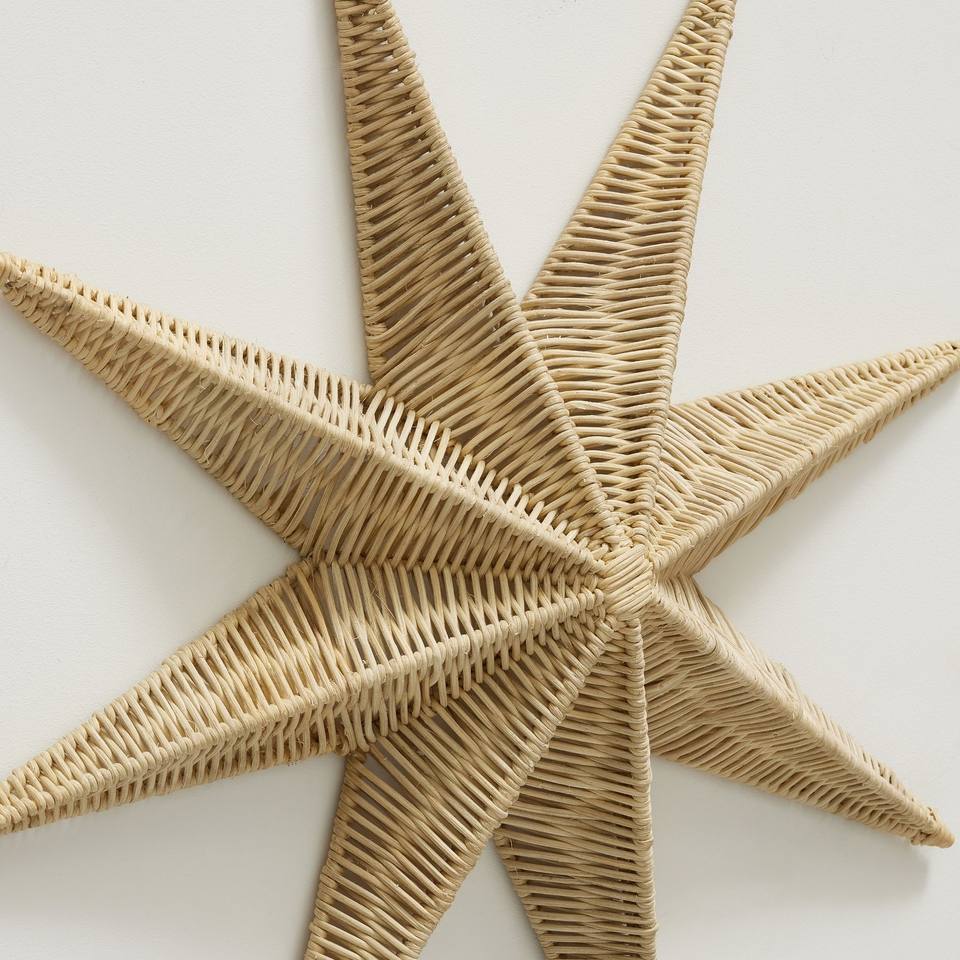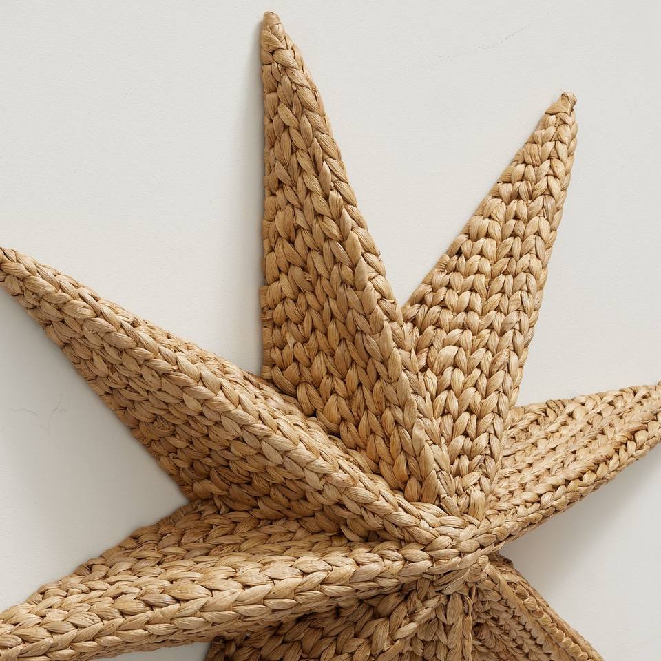 Warming Woven Stars Wall Art in Rattan and Water Hyacinth Hanging Wall Decoration for Home
