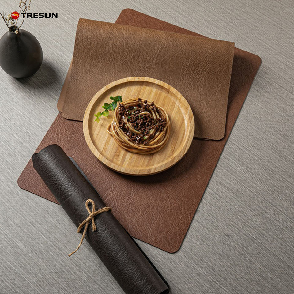 Washable PU Leather Placemats Non Slip Heat Resistant Table Mats for Dining Home Office Kitchen