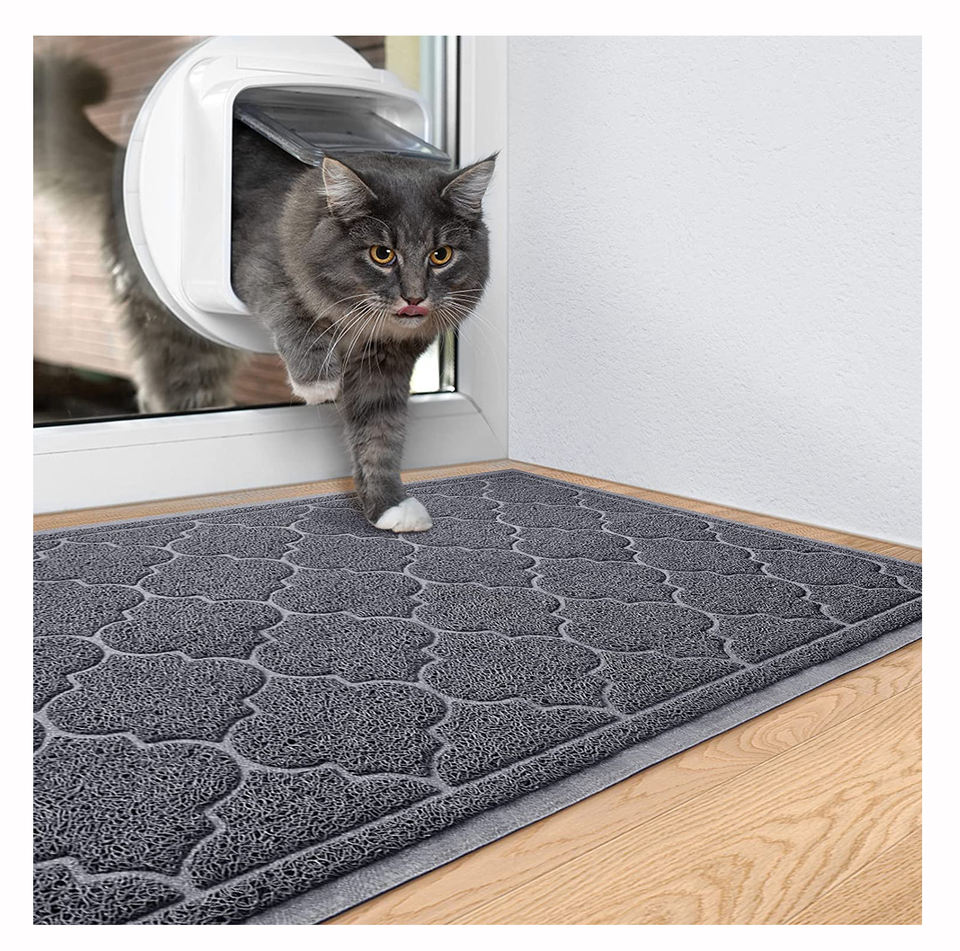 Solid Pattern Anti-Skid PVC Litter Box Mat Washable Scatter Control Kitty Trapping Mat with Soft Backing for Cat Paws