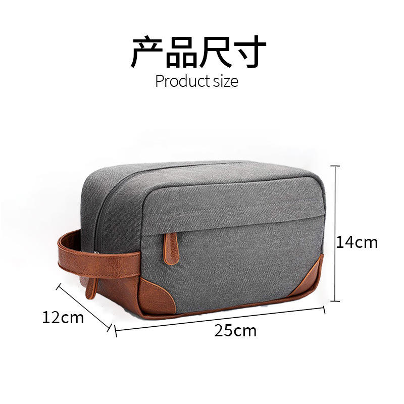Washed Canvas with PU Trim Toiletry Cosmetic Bag Portable Canvas Tote Zipper Closure Custom Logo Pattern Travel Cosmetic Pouch