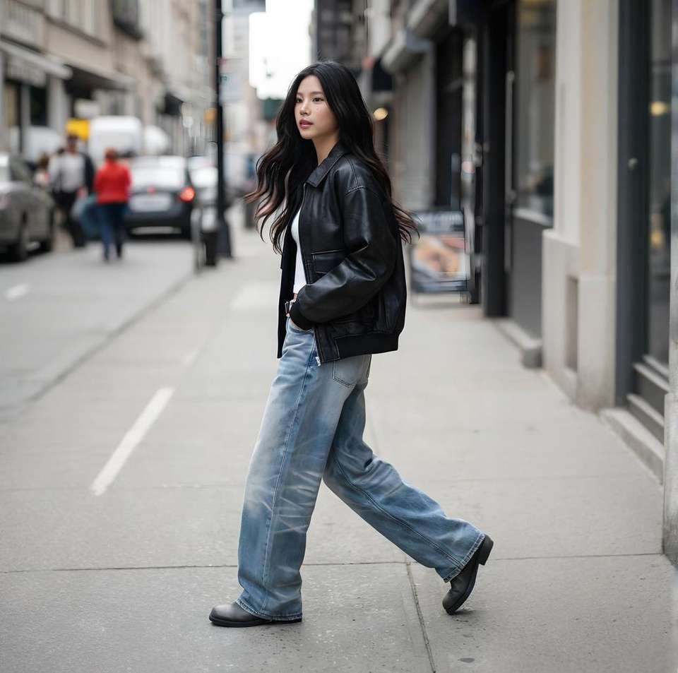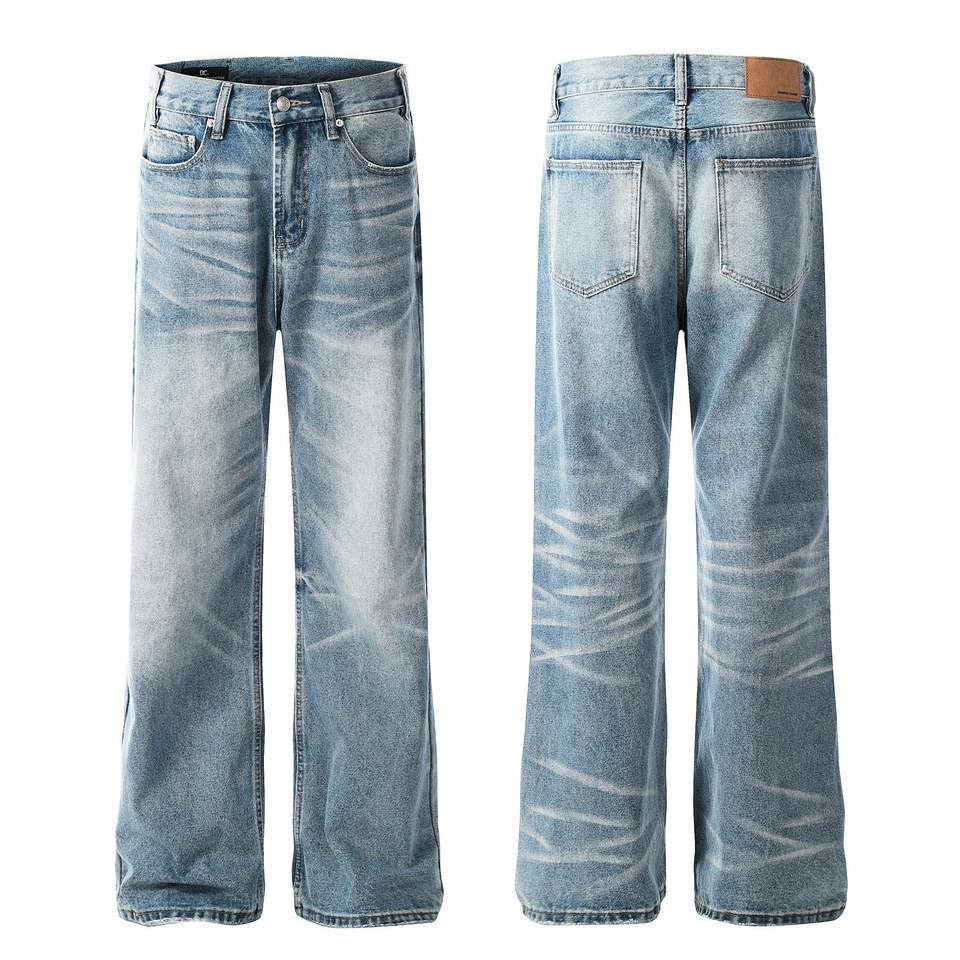 Washed Denim Autumn Solid Breathable Mid Waist Casual Jeans women's Street Trendy Punk Pants Loose Straight Long Trousers
