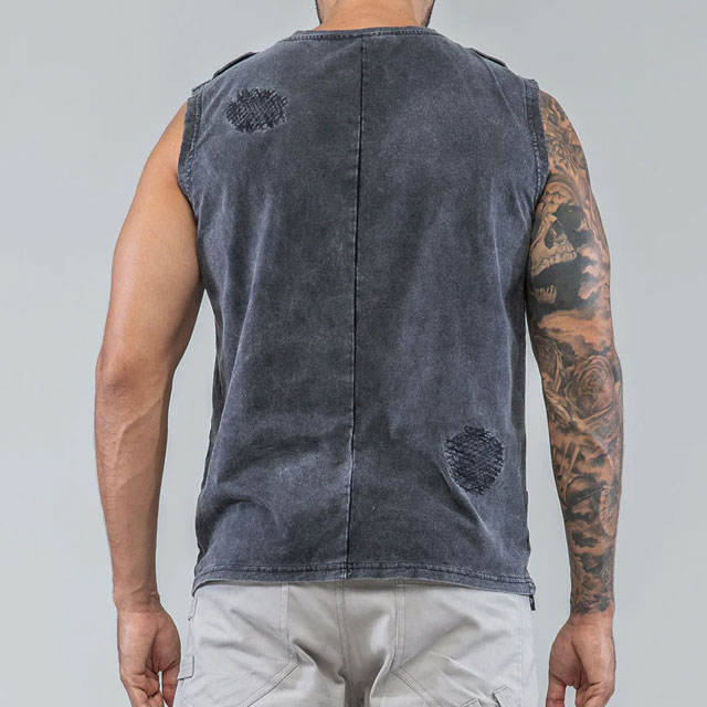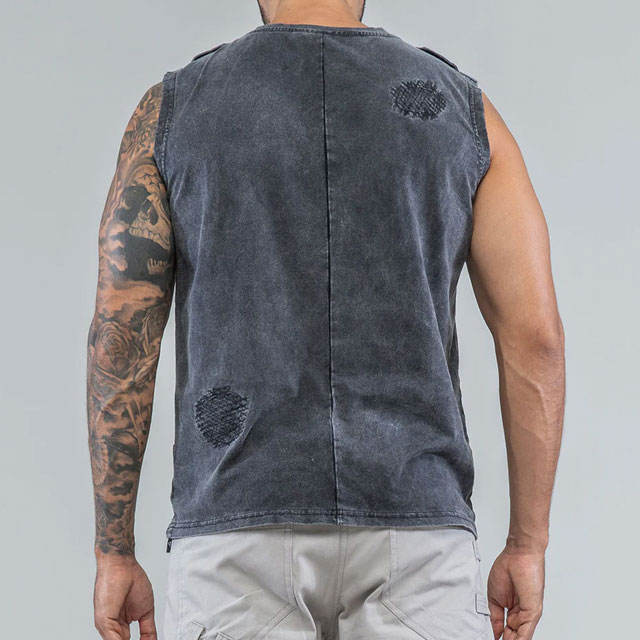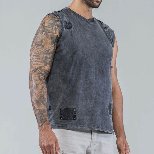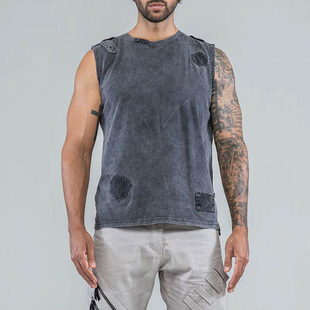 Washed Design Men's Distressed Custom Color Tank Top High Street Fashionable Blank Cropped Design Slim Fit Acid Washed Top
