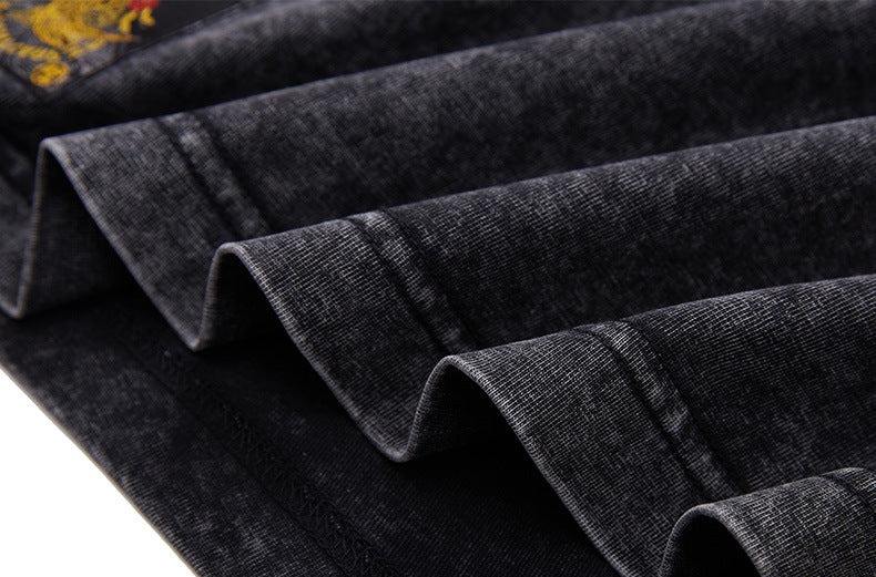 Washed Embroidered Lotus - Oriental Style T-Shirt t Casual T Shirts Comfortable Wear Latest Design Hot Selling Casual T Shirts