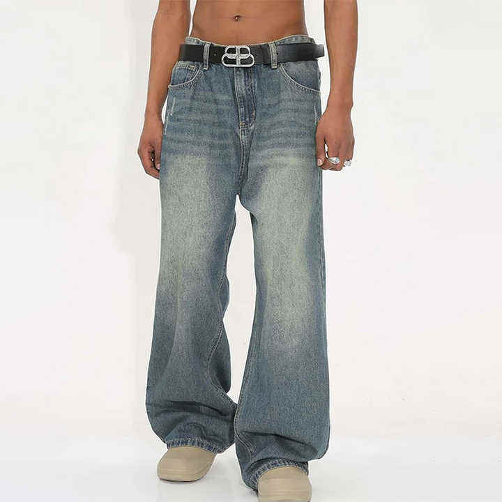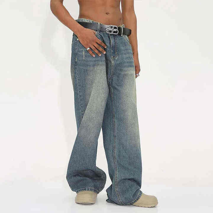 Washed Grey Slim Fit Streetwear Denim Jeans with Embroidery Light Wash Urban Look Eco-Dye Faded Unique Color Tech