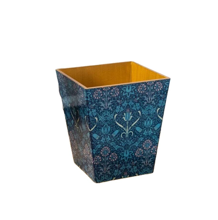 Waste Paper Bin Wooden Handmade Trash Can Blue for Home Office Kitchen Restaurant Hotel Room Waste Paper Garbage Bin Wholesale