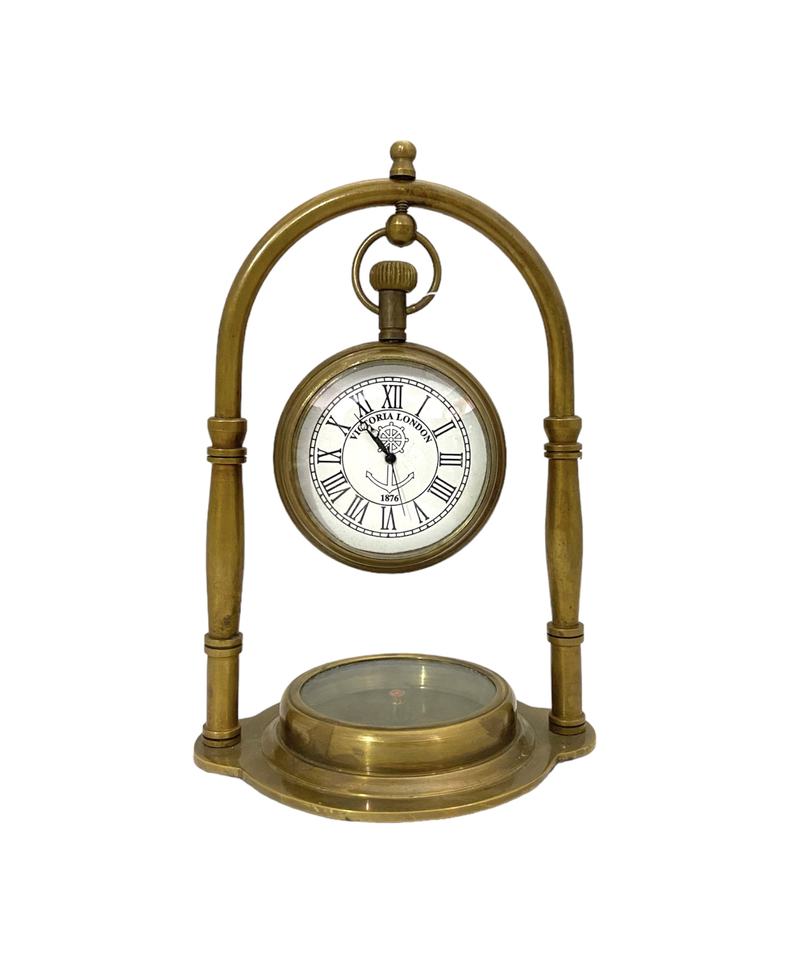 Watch on Compass Stand Elegant Nautical Art Decor BRASS & GLASS Multipurpose Office Desk Ornament Combining Timekeeping Maritime
