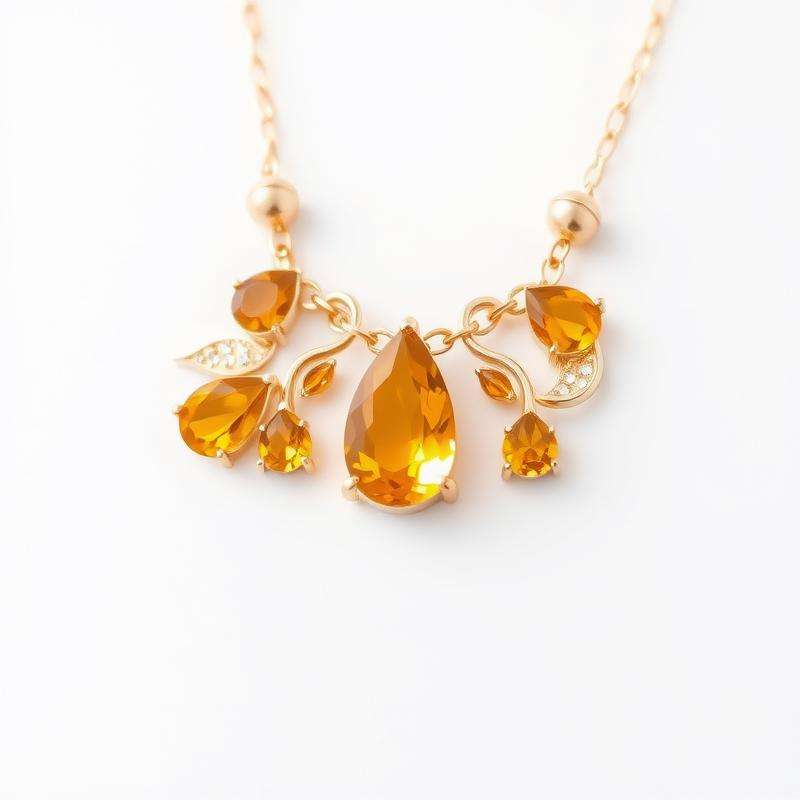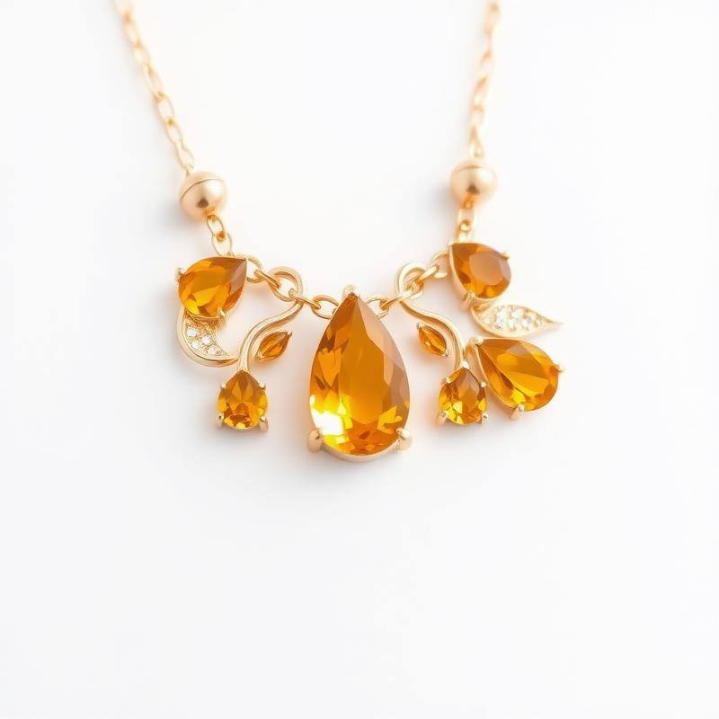 Water Drop Yellow Zircon Necklace Earrings Set 18K Gold Plated Fashion Jewelry Set for Women