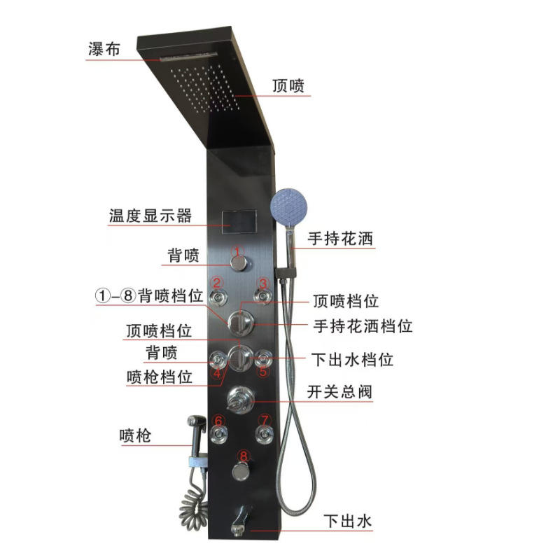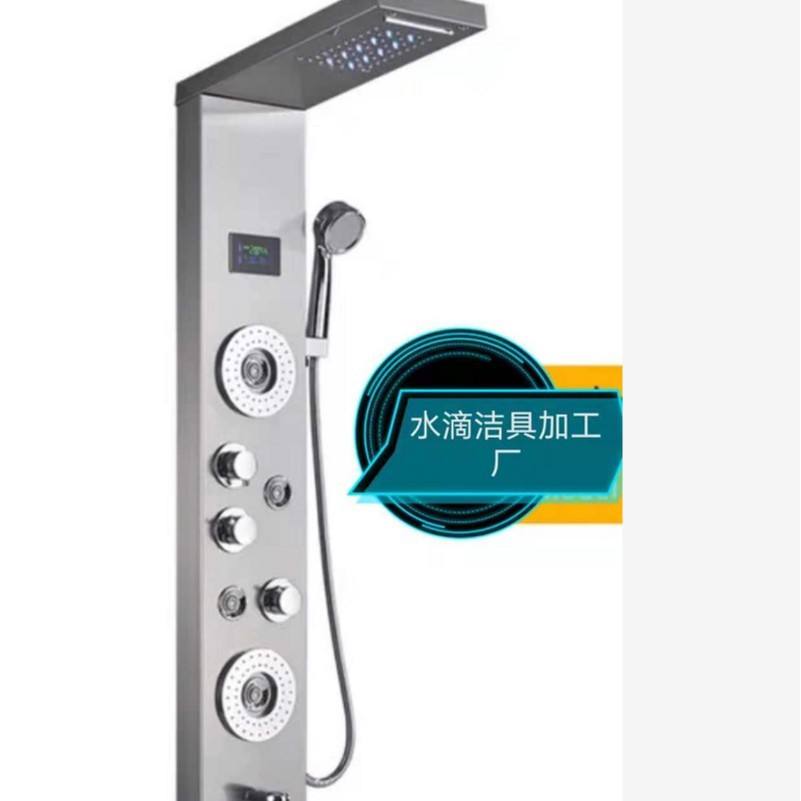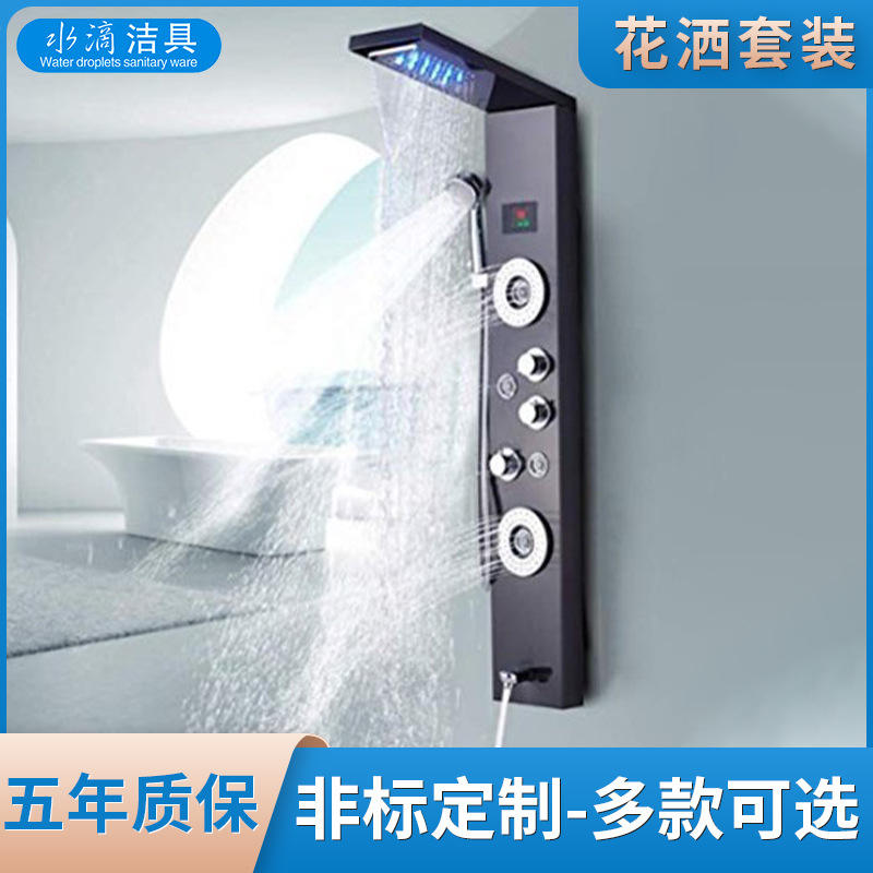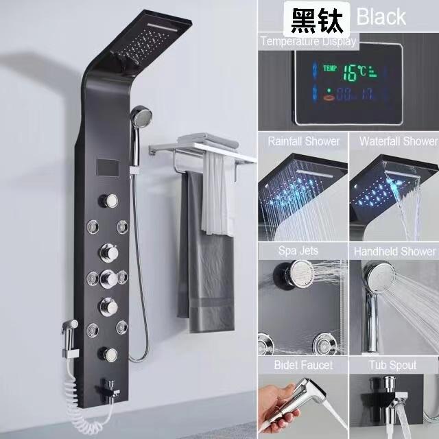 Water Droplets Digital Shower System With Led Display Brushed Black Titanium 304 Stainless Steel Shower Panel Set