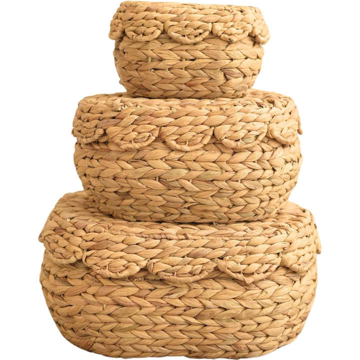 Hyacinth Water Woven Storage Boxes with Lids Farmhouse Kitchen Pantry Basket Set for Wardrobe Picnic Baskets and Shelf Baskets