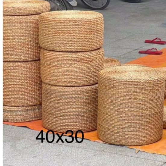Water Hyacinth Floor Cushion Handmade Customized Logo Braided Water Hyacinth Ottoman Round Stool