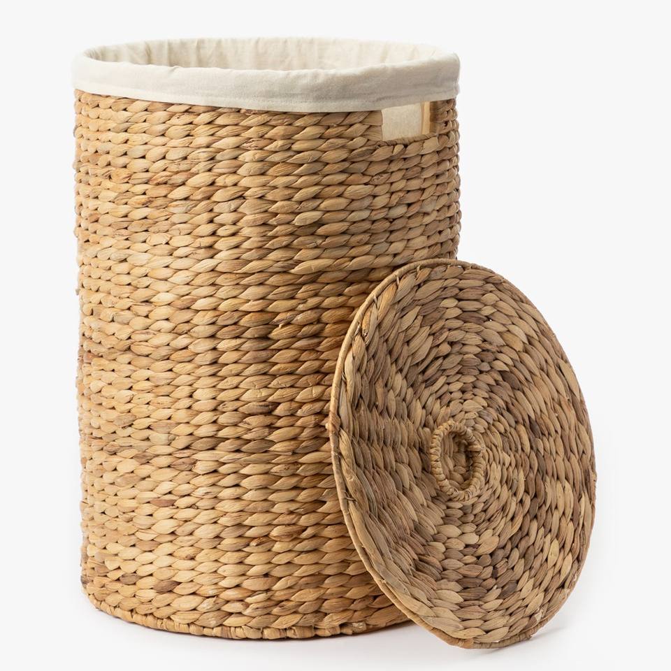 Water Hyacinth Laundry Basket With Lid and Handles 100% Natural Material Eco-friendly Eassy Clean for Home Hotel Bathroom