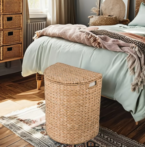 Water Hyacinth Laundry Basket with Lid Handwoven Wicker Hamper with Fabric Liner for Bathroom & Bedroom Storage from Vietnam