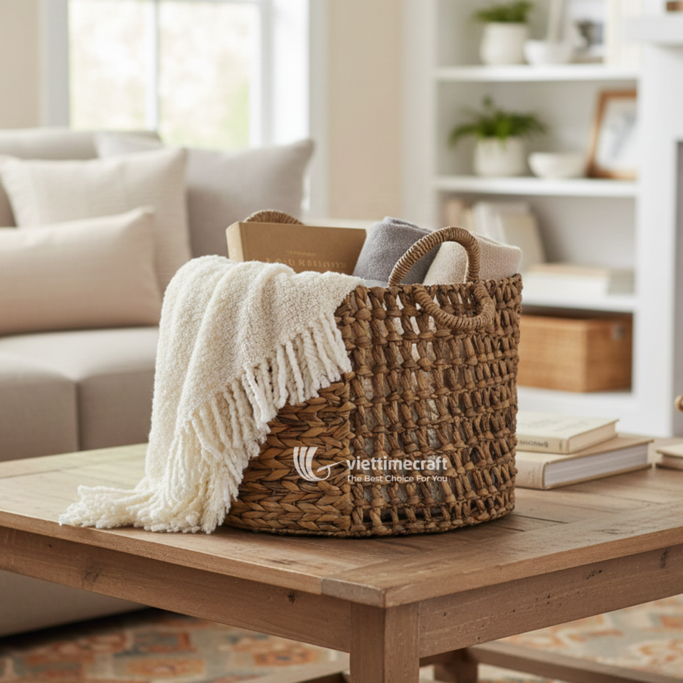 Water Hyacinth Natural Wicker Storage Basket with Handles Laundry & Storage Use Wholesale Available