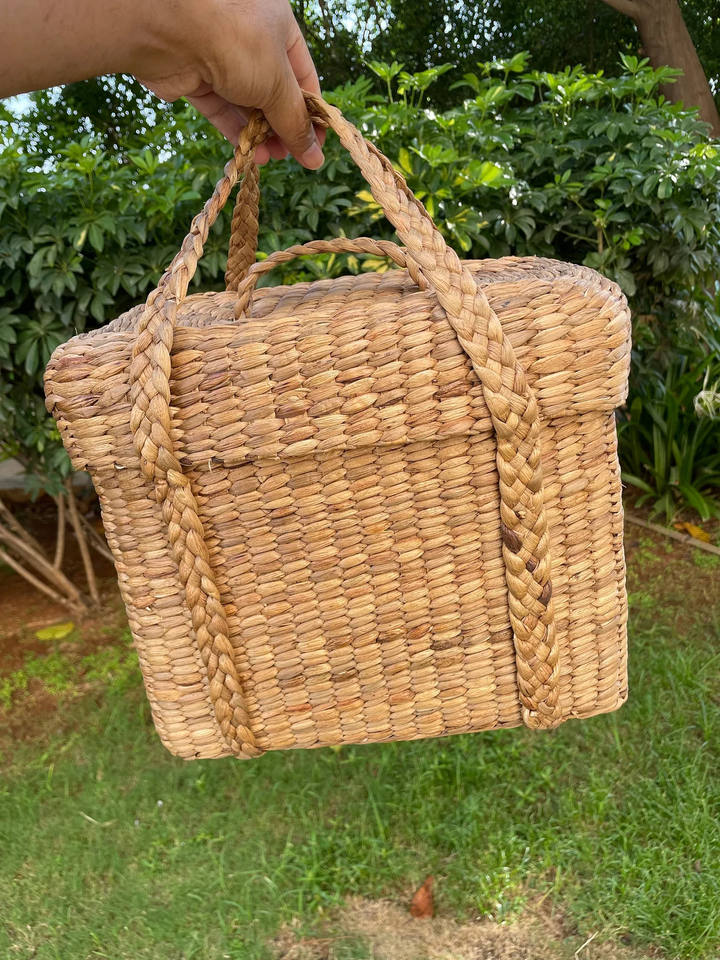 Water Hyacinth Picnic/Beach/Pool Basket - 100% Natural and Handmade - Set of 3 Different Sizes