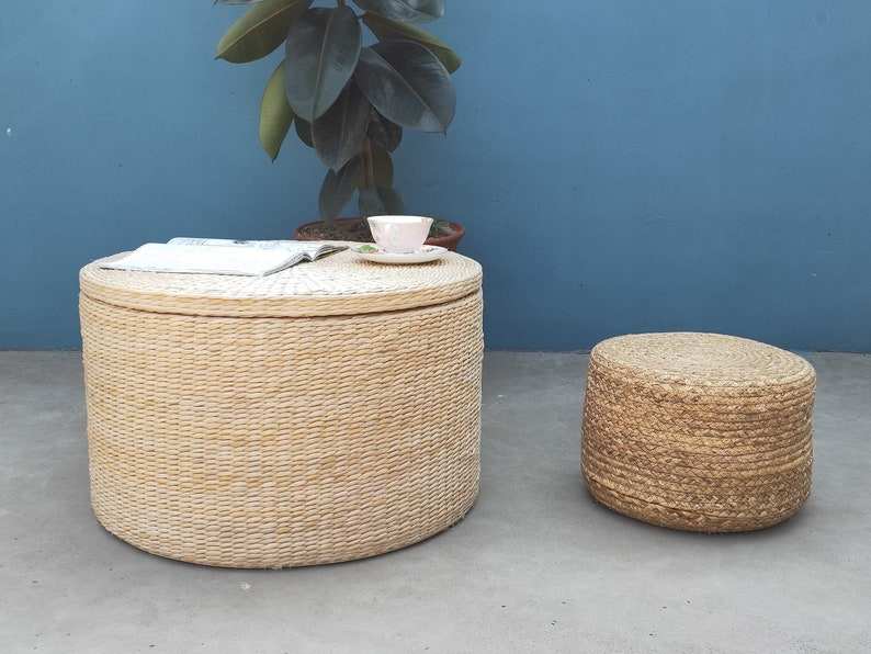 Water Hyacinth Pillow Rustic Straw Pouf Ottoman for Meditation Straw Cushion for Picnic Seat