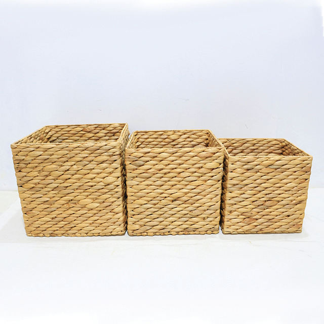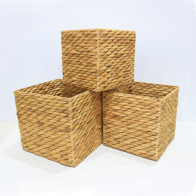 Water Hyacinth Rustic Square Storage Basket Set Handwoven Durable Eco-friendly