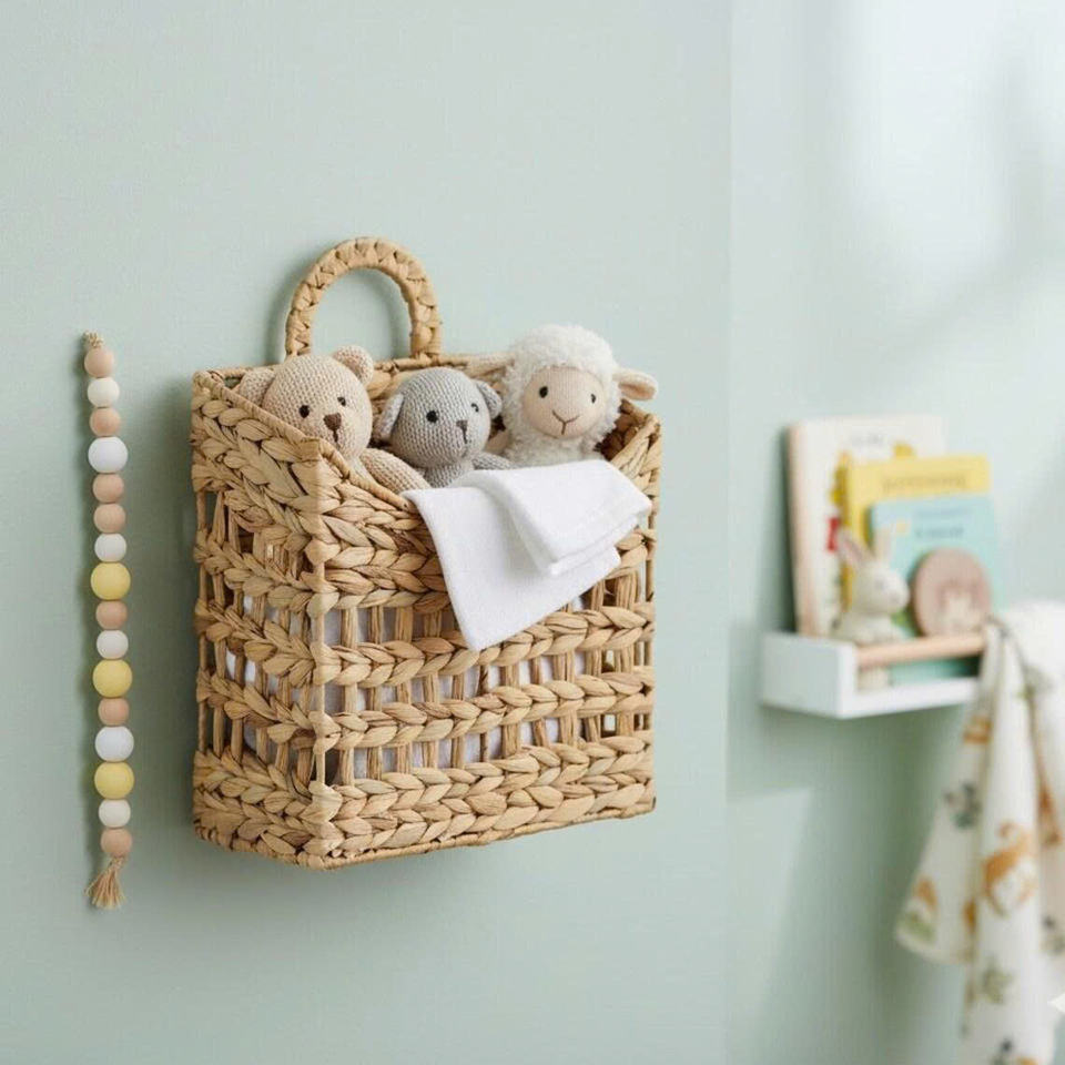 Water Hyacinth Wall Mounted Storage Basket Natural Handwoven Wicker Organizer Basket For Home Storage And Decoration