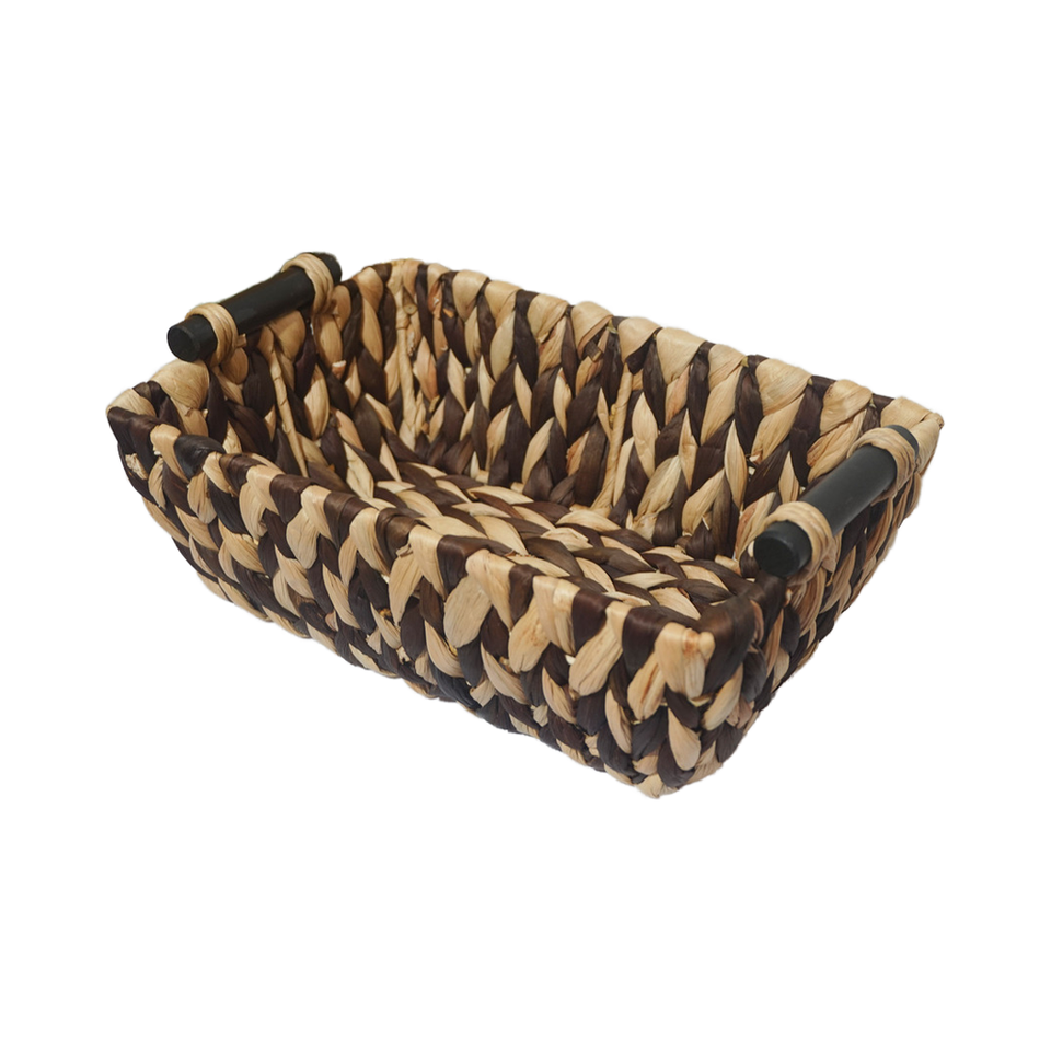 Water Hyacinth Wooden Handle Storage Basket Water Hyacinth Weaved Organizer for Household Sundries from Vietnam