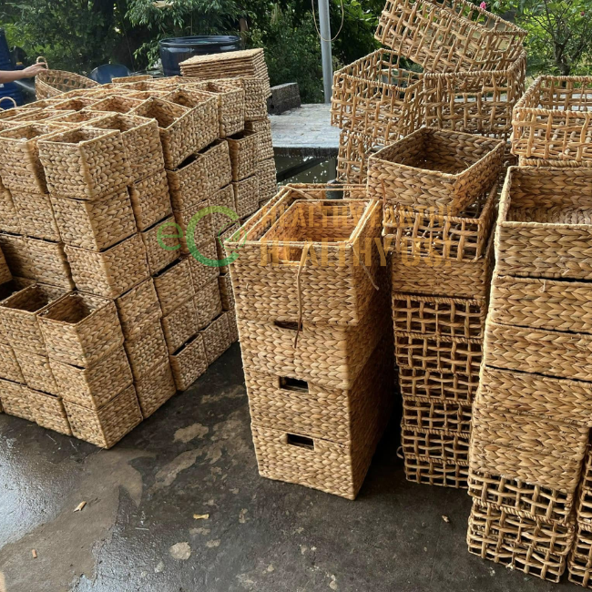 Water Hyacinth Woven Storage Basket Multiple Size Options Vietnam Water Hyacinth Laundry Storage Basket Custom Shape Made In VN