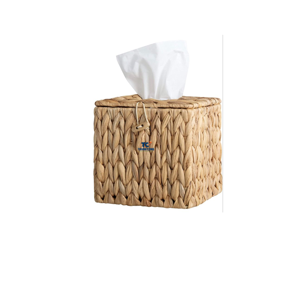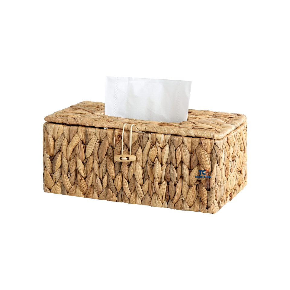 Water Hyacinth Woven Tissue Box Rattan Woven Lid Paper Box Pumping Paper Storage for Home Living Room