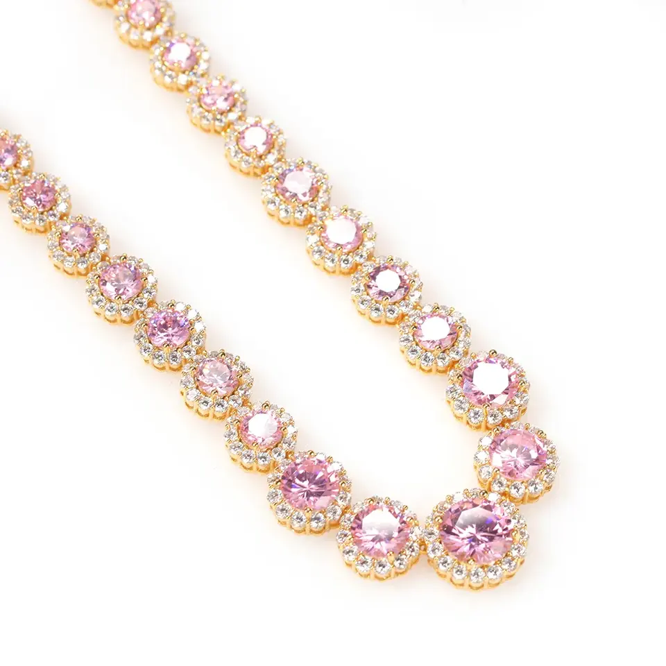 Water Proof Christmas 14k Gold Chain Bulk Jewelry Pink Glasses Gems Stone Necklace Type Chain for Women's