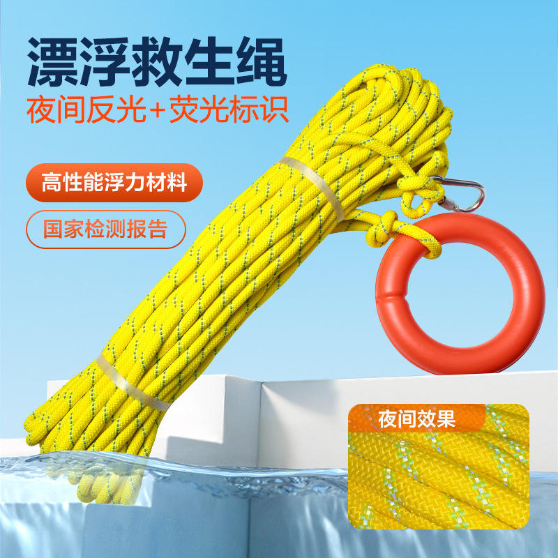 Water Rescue Rope 9.5Mm High Polymer Floating Reflective Fluorescent Safety Rope For Water Rescue