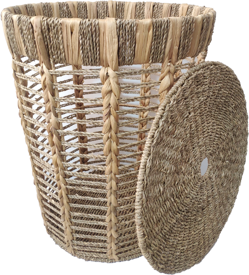 Water hyacinth laundry hamper basket, white wash wicke basket with lid