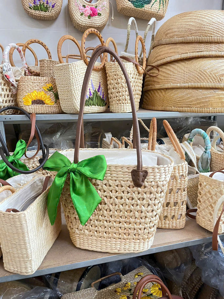 Water hyacinth woven shoulder bag handmade from straw rattan for women beach tote purse summer handbag Vietnam