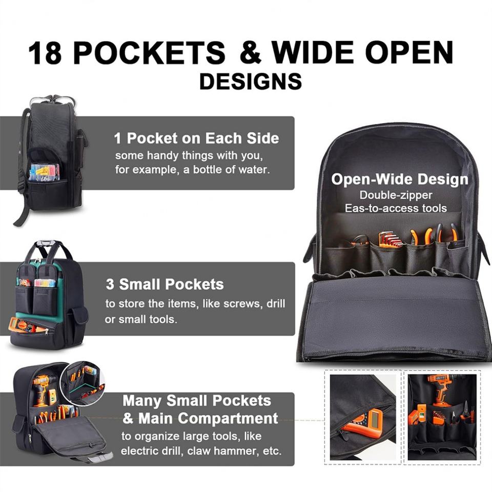 WaterProof Tool Backpack With Padded Shoulder Strap Tool Bag With Open Wide Design Durable Tools Backpack With Multiple Pockets
