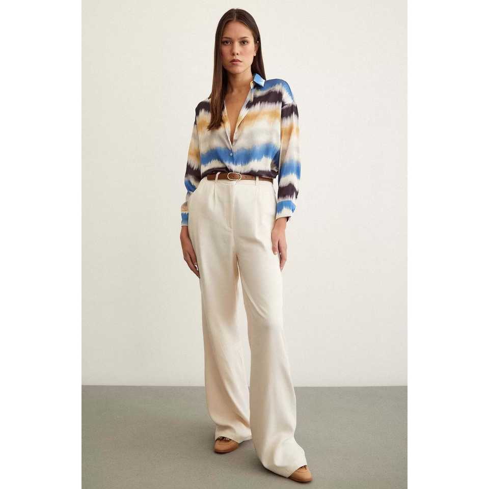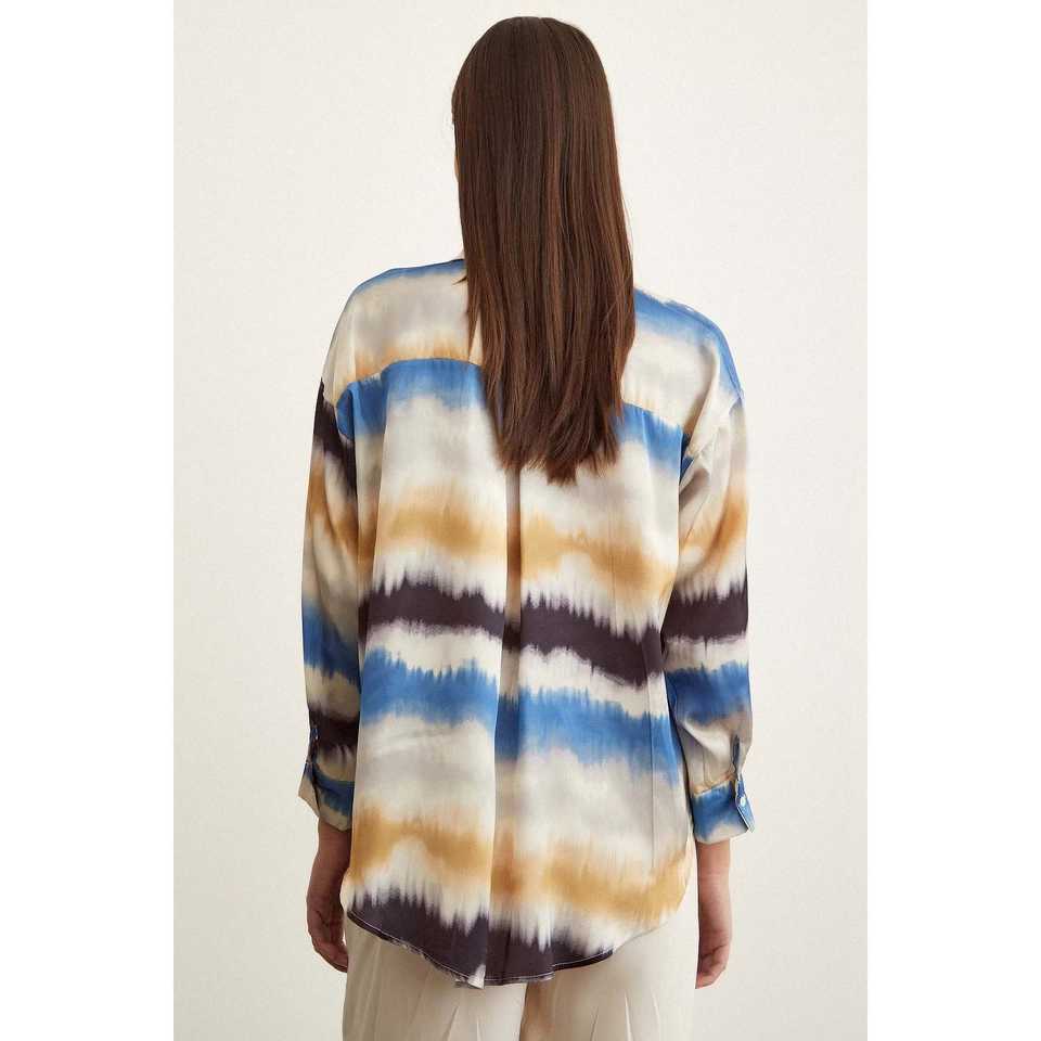 Watercolor Patterned Chiffon Shirt For Women Blue Casual Button Down Top Everyday Wear