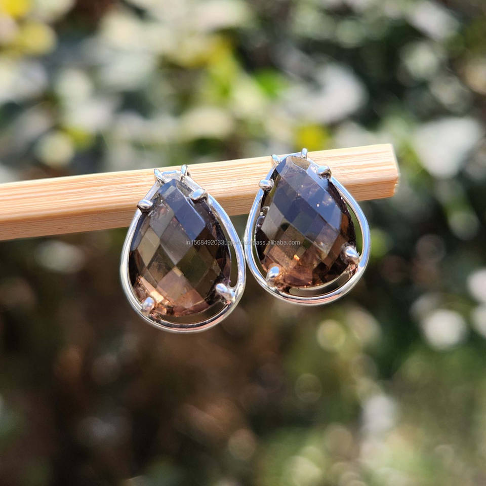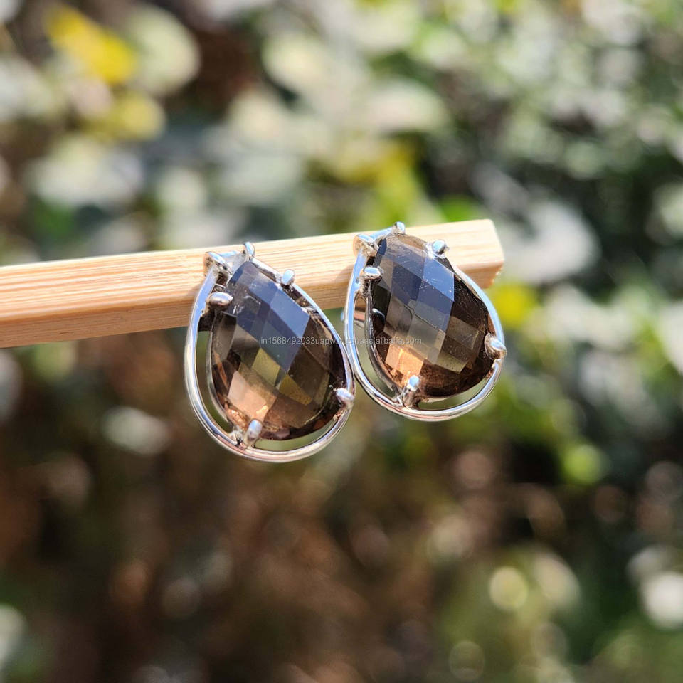 Product Name:Natural Smokey Quartz 925 Sterling Silver Stud Earrings