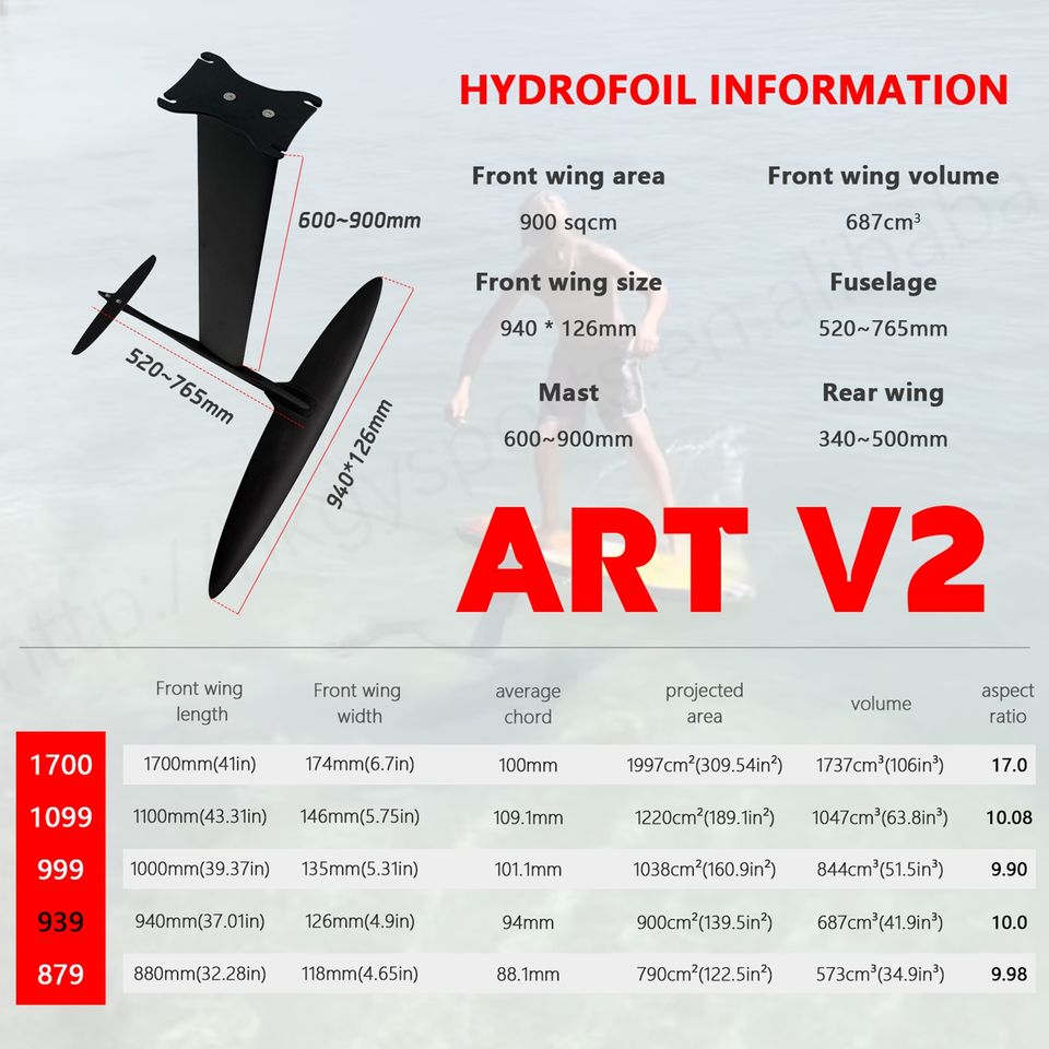 Waterplay Pumping Foil ART V2 939 Hydrofoil 900sqcm Carbon Aluminum Front Wing All-Around SUP Paddle Board Efoil Surfing