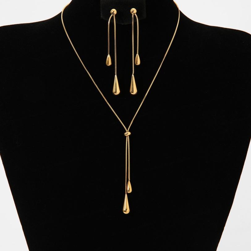 Waterproof 18K Gold Plated 316L Stainless Steel Huggies Hoop Water Drop Earrings Necklaces Fine Fashion Jewelry Sets for Women